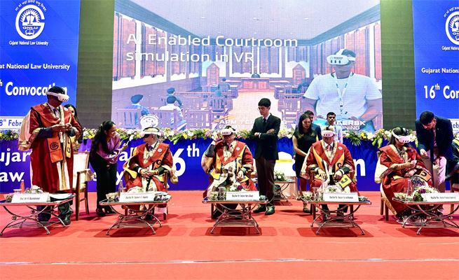 • AI-enabled VR simulation unveiled at Gujarat National Law University convocation in Gandhinagar
