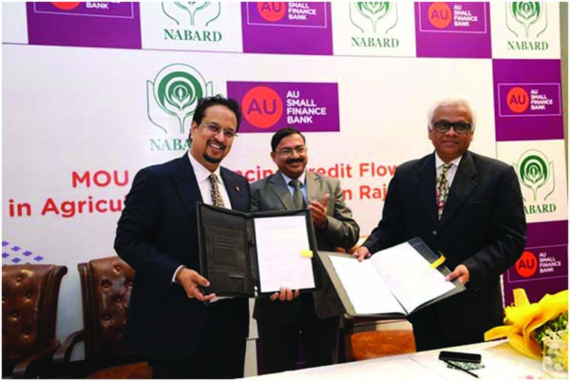 AU Small Finance Bank on Wednesday announced that the bank has signed a Memorandum of Understanding (MoU) with National Bank for Agriculture & Rural Development (NABARD) to boost ongoing rural developmental initiatives in the state of Rajasthan.