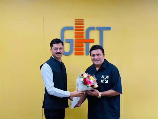 Sanjay Kaul, Managing Director & Group CEO, GIFT City with Ranjit Bindra, CEO and Founder of Bastian Hospitality in Gandhinagar on Monday-NE photo