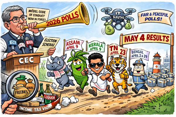 Tags: Assembly Elections 2026 IndiaElection Commission poll schedule 2026Income Tax monitoring election fundingKerala Assam Puducherry poll date April 9Model Code of Conduct 2026 electionsTamil Nadu Assembly Election 2026 dateWest Bengal election phases 2026