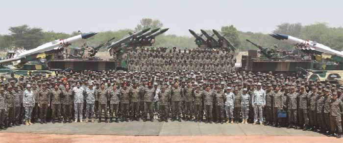 Chief of Defence Staff General Anil Chauhan with Lt Gen Manjinder Singh, Army Commander of South Western Command; Air Marshal Nagesh Kapoor, the Air Officer Commanding-in-Chief of South Western Air Command and brave warriors in Suratgarh and Naliya military bases on Monday-Courtesy: PIB