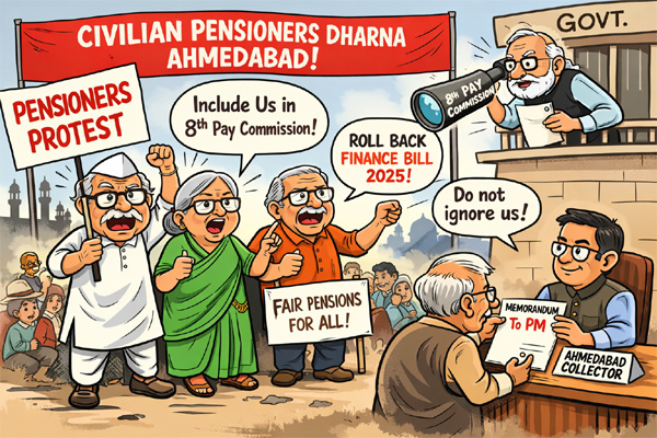 Under the banner of the Forum of Civilian Pensioners Association, several pensioners’ bodies have announced a state-level dharna in Ahmedabad on February 13, 2026, protesting against what they describe as stringent provisions introduced through the Finance Bill 2025, which they allege deprive Central Government pensioners of certain existing benefits.