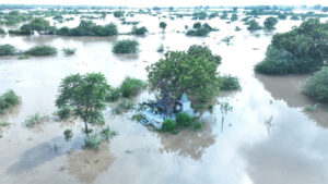 Aerial view of flood-hit Dharoda village in Kheda district-Courtesy: Defence PRO