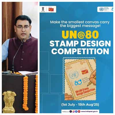 Krishna Kumar Yadav, Postmaster General of North Gujarat Region, Ahmedabad said, “Students of Class 9 to Class 12 standard and from Art colleges can participate in Stamp Design Competition on the theme “UN@80 and India’s leadership in building our future through multilateralism, global leadership and stewardship”. This competition commenced on 1st July 2025 and will end on 15th August 2025. Students can draw their ideas through crayons, pencil colors, water colors, acrylic colors, etc. on A4 Size, 200 GSM, White color art Sheets.