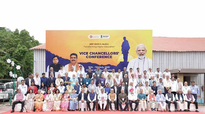 The two-day National Vice-Chancellors’ Conference, hosted at Tent City-2 in Ekta Nagar, Narmada district in Gujarat, was inaugurated by Union Education Minister Dharmendra Pradhan on Thursday.