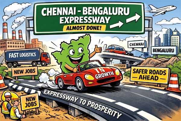 The long-awaited Chennai–Bengaluru Expressway is moving decisively towards completion, with key stretches in Tamil Nadu regaining momentum after years of delays, positioning the State for a major leap in connectivity, logistics efficiency, and economic growth.