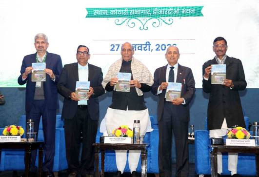 Defence Minister Shri Rajnath Singh releases a book titled ‘The Unprecedented Success Story of the First Indigenous Supersonic Multi-Target Surface-to-Air Missile System – AKASH’ during the award ceremony in New Delhi.-NE photo