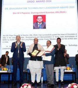 • Dr Bhagavantam Technology Leadership Award 2024 to Shri BV Paparao, Director, Advanced Systems Laboratory, Hyderabad, for leadership in developing Agni missile technologies and MIRV capability for long-range hypersonic cruise missiles.