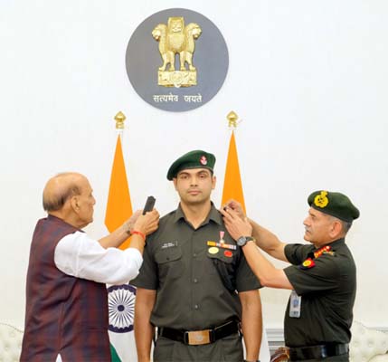 In a ceremony that seamlessly blended the spirit of sportsmanship with that of soldiering, Defence Minister Rajnath Singh on Wednesday formally conferred the insignia of Honorary Lieutenant Colonel in the Territorial Army upon two-time Olympic medalist Neeraj Chopra. The event, held at South Block, New Delhi, marked a proud moment for both the sporting and defence communities.