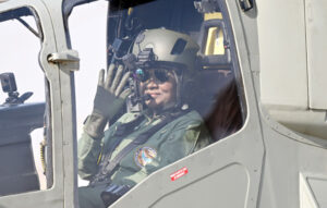 Supreme Commander President Droupadi Murmu after her historic sortie in the indigenous Prachand Light Combat Helicopter at Air Force Station Jaisalmer, reaffirming India’s indigenous defence strength. – Courtesy: PIB
