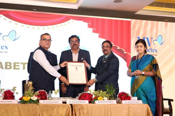 The prestigious Prof. M. Viswanathan Centenary Award and Oration was delivered by Dr. Banshi Saboo, Chairman, International Diabetes Federation (South-East Asia), in the presence of Chief Guest Dr. A. Somasundaram, Director, Directorate of Public Health and Preventive Medicine, Government of Tamil Nadu.