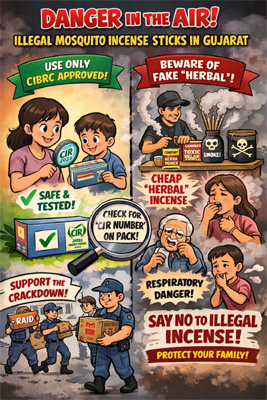 Tags: CIBRC approved mosquito repellentsCIR number mosquito repellentdengue malaria prevention IndiaGujarat illegal manufacturing hubHome Insect Control Association HICA raidsIllegal mosquito repellent agarbatti GujaratInsecticides Act 1968 enforcementmosquito incense stick health risksrespiratory risk from mosquito smokeunapproved mosquito repellent chemicals