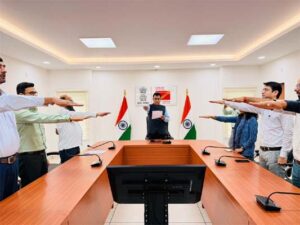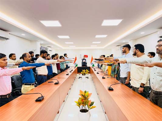 The event in Ahmedabad was attended by Assistant Director Varis M. Vahora, Senior Accounts Officer Pooja Rathore, Assistant Accounts Officer Chetan Sain, Ram Swaroop Mangawa, Assistant Superintendent Jinesh Patel, Ramesh Patel, Ronak Shah, Inspector Yogendra Rathod, and several other officials, who took part in the solemn pledge ceremony and paid floral tributes to the great leader.
