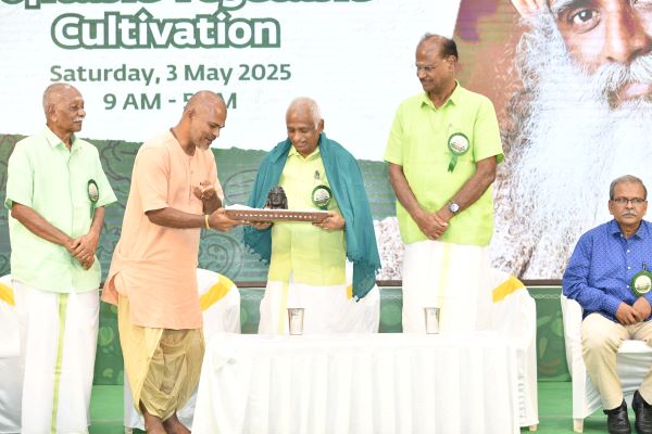 Delivering the welcome address, Muthukumar, Field Coordinator of Isha’s Save Soil Movement, remarked, “Our lifestyle is changing, and physical labour has diminished. For us and future generations to live healthily, we must return to organic farming.”