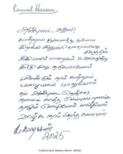 Kamal Haasan’s own post on social media added a poetic flourish: