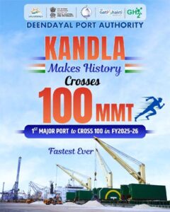 In a resounding testament to its operational supremacy, Deendayal Port Authority (DPA), Kandla has become the fastest Major Port in India to cross the 100 Million Metric Ton (MMT) cargo-handling mark in FY 2025–26, achieving the feat significantly earlier than in any previous fiscal.