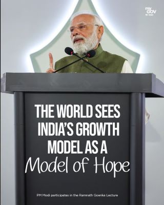 Addressing a packed audience at the Indian Express–organised event, the Prime Minister hailed media pioneer Ramnath Goenka as a “pillar of democracy” whose courage during the Emergency remains a timeless inspiration. He said Goenka embodied “positive impatience”—a trait he linked to the spirit of today’s India, “impatient to become developed and self-reliant.”