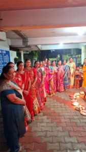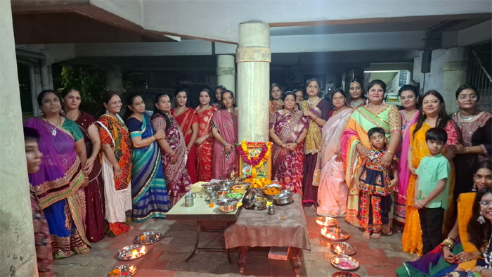 As lamps were lit across homes and temples, the residents of Vraj Deep Society gathered in large numbers for the Maha Aarti, filling the atmosphere with chants, rhythm of claps, and the fragrance of incense. The spiritual resonance of the ritual was coupled with the joy of collective participation, reinforcing values of faith, unity, and shared cultural identity.