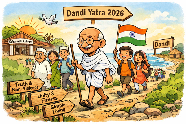 As the calendar turns to 2026, a dedicated group of walkers will commence a meaningful journey along the historic Dandi Path from Sabarmati Ashram at 6:30 AM on Saturday, 3 January 2026, retracing the footsteps of Mahatma Gandhi’s Salt March. Rather than merely covering kilometres on foot, participants aim to internalise the spirit of the original march — honouring moral strength, discipline, and steadfast resolve that defined Gandhiji’s non-violent struggle for India’s freedom.