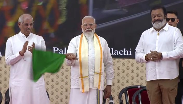 On the occasion, the Prime Minister flagged off the Palakkad–Pollachi MEMU train service, strengthening rail connectivity between Kerala and Tamil Nadu.