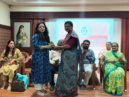 One of the Faculty Members of Maharanishree Nandkuvarba Mahila College felicitates The Rotary Club of Bhavnagar Vibrant President Rtn. Namrita Chadha (left) in Bhavnagar on Monday-NE photo