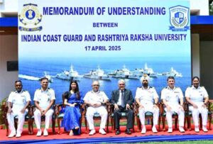Gujarat based School of Integrated Coastal and Maritime Security Studies (SICMSS), the Rashtriya Raksha University (RRU) signed a significant Memorandum of Understanding (MoU) with the Indian Coast Guard (ICG) to advance collaboration in education, training, and strategic research in maritime law enforcement and coastal security.