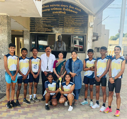 The event saw participation from 206 students across colleges. The college team, comprising Joshi Vaibhav, Parmar Prakash, Solanki Ganpat, Makwana Ayush, Sheikh Saad, and Sheikh Abdul Rahim, delivered an outstanding performance. All participants were appreciated by the Principal Dr Darsha Jani and Physical Education Teacher Dr Seema Qadri, who congratulated them for bringing pride to the institution.