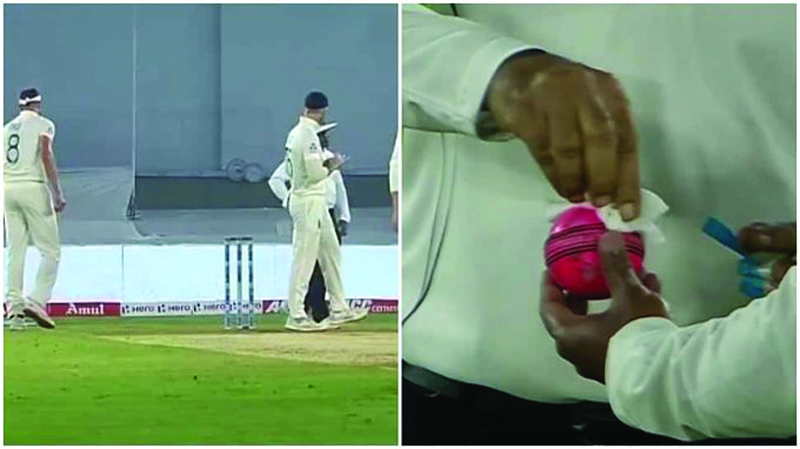 England all-rounder Ben Stokes was seen applying saliva on the ball on the opening day of the day-night third Test against India here on Wednesday, following which the ball had to be sanitised.