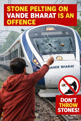 The Railways issued a stern warning to residents of villages located near railway lines, stating that unlawful acts such as stone pelting, which endanger passenger safety and damage railway property, will be dealt with strictly. Parents have been urged to counsel their children and prevent them from engaging in such dangerous activities.