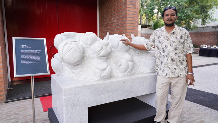 “With I am Cotton, I wanted to capture a paradox,” Shaik reflected during the opening. “Cotton is light, transient, and tied to histories of toil and trade. By translating it into stone, I force the viewer to confront fragility as permanence, labour as monument. It becomes a meditation on the unseen hands that pick and the weight of memory embedded in every fibre.”