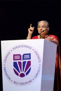 Addressing 800 students, Sudha Murty delivered a heartfelt 30-minute talk on reading, values and the importance of embracing every opportunity. She encouraged children to participate in all school activities, describing these experiences as the “stones” that shape future “diamonds”.