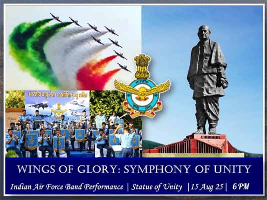 To mark the 79th Independence Day of India, a spectacular musical performance by the Indian Air Force Band will be conducted at the iconic ‘Statue of Unity’, Kevadia at 6 pm on Friday. This special event is being organized to commemorate the spirit of patriotism, unity and national pride.