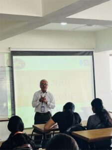 Anil Purohit, Counsellor, Financial Literacy & Credit Counselling Centre, State Bank of India delivering a guest lecture on financial literacy-NE photo