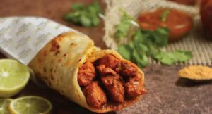 Succulent chicken cubes simmered in rich masalas, rolled into a spicy, satisfying Frankie.