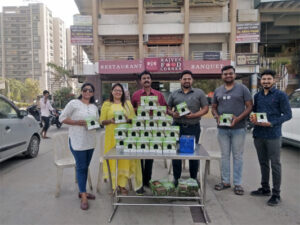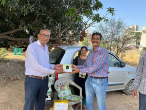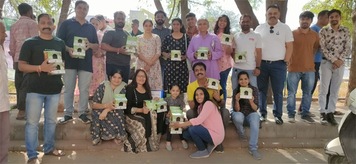 Beyond distribution, Samirbhai actively engages with schools—teaching children to create birdhouses using recycled materials under the “Best out of Waste” concept.