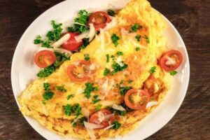 - The omelette can be enjoyed with assorted breads, ketchup etc and is a filling breakfast.