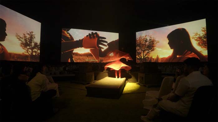 Across two sold-out nights, the audience found themselves inside a living story — six monumental screens surrounding them, shifting, dividing, and merging in perfect rhythm to music and dance. Over 90 minutes, dancers, vocalists, and cinematic visuals intertwined to explore timeless themes of spirituality, technology, and human consciousness.