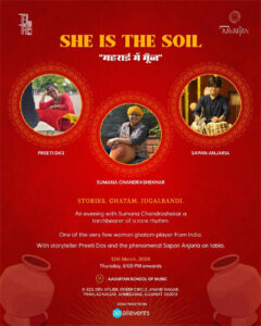 In a city known for its vibrant arts culture, an unusual sound will soon echo from a humble clay pot. On March 12, TellTales and Aavartan School of Music will present “She Is The Soil,” an immersive performance that places the spotlight on the ghatam—one of India’s most fascinating yet lesser-known percussion instruments.